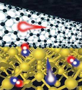 그림. 탄소 나노튜브 및 실리콘 기판 경계면에서 발생하는 전하 거동에 관한 모식도.