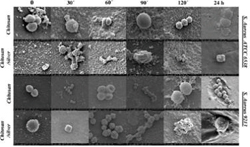 그림 1. 키토산과 키토산-은 박막 위의 박테리아.