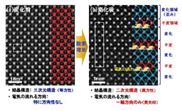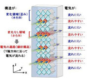 도호쿠대학 원자분자재료과학고등연구기구(AIMR) 연구팀은 IBM 취리히연구소(스위스)와 공동으로 세라믹(티탄산란탄, lanthanum titanate)에 포함된 산소성분의 비율을 변화시켜 전기의 흐름 방향이 극적으로 변화되는 메커니즘을 해명하였다. 즉, “전기가 일정 방향으로 흐르는 첨상구조”가 결정 내부에 규칙적이고 자발적으로 형성되는 것이 원인이라는 것을 밝혀내었다.