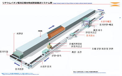 Roller Hearth Kiln(RHK)은 Ceramic Roller에 의해 처리제품을 반송하는 Tunel형으로 연속 생산하는 고효율 소성로이며, MLCC, Chip Varistor, Ferrite, Lithium-Ion 전지용 양극재와 음극재 소성로 등 광범위한 분야에 응용되고 있다.