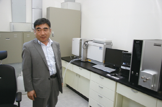 정찬수 대표이사가 기업부설연구소에서 장비 설명을 하고 있다.