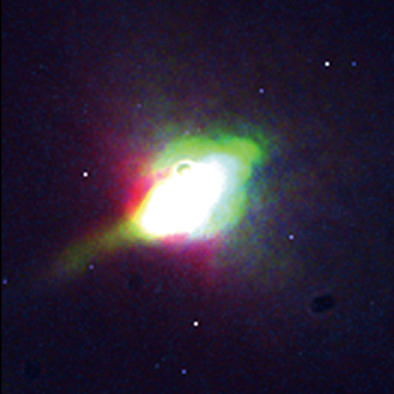 그림2: 레이저 여기로 나노공동과 결합된 실리콘으로 부터 백색광 방출 사진.
