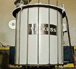 사진. 벨케스 에너지 저장 시스템은 위의 프로토 타입에서 볼 수 있듯이, 진공장치에 보관된 저가 이유리 복합재 플라이휠을 중심으로 되어있다.