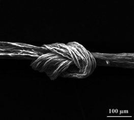 이 섬유는 독특한 매듭 강도를 가진다. 대부분의 섬유들은 매듭의 장력 하에서 부러지는 경향이 있지만 이번 연구진이 개발한 섬유는 100%의 매듭 효율을 가지는 것으로 증명되었다. 이 새로운 연구결과는 저널 Advanced Materials에 온라인으로 게재되었다.