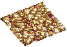 PTFE 표면에 있는 직경 50nm의 실리카 나노입자의 AFM 이미지.