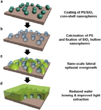 연구진은 사파이어 기판 위에 속이 빈 실리카 나노입자를 도포한 후 GaN 결정을 성장시키면 결정에 생기는 결함 농도를 크게 줄인다. 나노입자가 LED에서 발생한 빛을 산란시킴으로써 빛이 반도체 밖으로 많이 빠져나올 수 있게 해 휘도 향상에도 도움이 된다. 합성 방법을 바꿔 가면서 실리카 나노입자의 지름과 두께를 조절할 수 있다. 기존 LED 제조 공정을 그대로 활용할 수 있어 경제적이다.