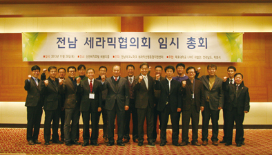 전남세라믹협의회(회장 배지수)는 지난달 28일 신한비치호텔에서 임시총회를 열고 회칙개정안 의결과 협의회 발전을 위한 활성화 방안에 대해 집중 토론이 있었다. 이날 임시총회는 노효섭(드림소재 대표이사) 총무의 진행으로 그동안의 협의회추진경과를 소개했다. 이어 배지수 회장은 개회인사말에서 “전남지역은 예로부터 도자기 고장으로 세라믹산업이 발전해 왔지만 협의체하나 없어 동종업계 정보교류 부재 등 횡적 네트워크가 안되고 있다.”며 전남지역협의회 활성화를 역설했다. 또한 배지수 회장은 “정부나 지자체에서 새로운 세라믹메카로 전남지역을 주시하며 적극 지원하고 있는 이때 우리 전남지역 세라믹업체가 하나로 뭉쳐 협의회가 중심이 되어 전남지역 세라믹산업 발전에 선도자가 되어야 한다.”고 강조했다. 이날 회칙 개정안은 그동안 임원진들이 수차례 심의하고 조정하여 현실에 적합한 회칙을 도출한 안으로써 만장일치로 의결하고 협의회 회칙으로 채택했다. 이어 협의회 활성화 방안에 대해서 참석자들은 다양한 의견을 제시했다. 다음 정기총회는 12월 19일 목포대 세라믹연구소의 세미나와 함께 송년회밤 행사를 개최하기로 의결했다. 이번 임시총회는 이어 같은 장소에서 개최되는 KOREA세라믹동반성장포럼 총회와 함께 전남지역 세라믹산업 발전을 모색하는 또 하나의 행사로서 더욱 의미가 있었다.