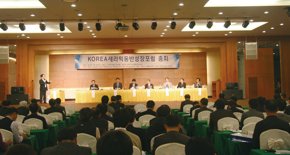 지난달 28일 목포 신안비치호텔에서 세라믹 업계의 문제점을 분석하고, 발전을 도모하기 위해서 발족한 동반성장포럼 셀을 총 결산하는 ‘2013 코리아 세라믹동반성장포럼’ 총회가 열렸다.