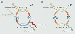그림. 2단계 온도스윙 반응(좌)과 등온반응에 의한 물 분해.