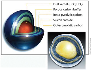 ORNL 팀은 이들이 ‘완전 세라믹 마이크로캡슐화 연료’ 라 부르는 새로운 TRISO의 설계를 조사하고 있다. 이는 현재 이미 사용되고 있는 연료와 유사한 모양과 성능을 지닌 새로운 연료 디자인을 개발하기 위한 노력으로 만들어졌다. 탄화규소는 방사능 저항성, 증기 저항성, 그리고 굴절 특성이 있다.