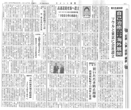 <그림 1> 일본 시멘트 신문 (2014년 1월 27일자 4면 게재내용)