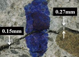 이에 연구팀은 기존의 시멘트, 콘크리트 수화과정을 정밀히 연구하여 시멘트, 콘크리트 자체의 내구성을 향상 시켜 줄 수 있는 균열자기치유 기술을 토목, 건축 분야에 도입, 균열 부위가 물과 반응하여 스스로 무기계 결정을 생성시켜 균열을 보수하는 신기술을 개발하였다(그림3). 일반적으로 철근 콘크리트 구조물에서 있어서 “물”은 균열부위를 통해 콘크리트 내부에 침입되면 중성화, 철근부식, 염해 등 각종 복합적인 열화를 촉진시키는 주요원인으로 콘크리트 구조물의 내구성을 저하시키는 큰 역할을 한다.