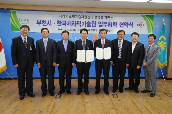 지난달 부천시청에서 만난 한국세라믹기술원 김민 원장과 부천시청 박춘배 부시장은 네트워크를 구축해 관내 중소기업의 세라믹 관련 창의적 기술 핵심능력 향상을 위해 상호 협력하는 협약을 체결했다.