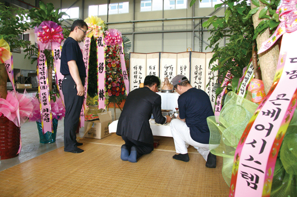 이날 현장에서는 거래 업체 관계자들과 회사 임직원, 가족들 모두가 참석해 고사를 지내고, 회사의 안녕과 발전을 기원했다. 김홍식 대표는 “불경기 속에서도 틈새시장을 찾아, 열심히 회사를 운영해 왔다”며 “바쁘신 일정에도 축하하러 와주신 모든 분께 감사드린다”고 인사를 전했다.