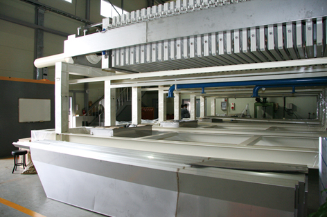 새로 입주한 공장 내에도 이제 막 생산을 끝낸 대형 여과기들이 출고를 기다리는 중이다. 자사의 멤브레인 특허기술이 적용된 여과판으로 만들어진 대형 필터프레스 제품. 글로벌 건자재기업에 납품될 예정으로 주문형 맞춤제작 했다.