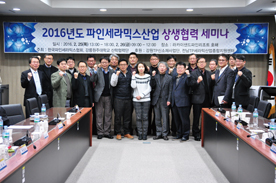 제5차(2016년 1회) 파인세라믹스산업 상생협력교류회가 ‘공동 관심분야의 산업동향 세미나 및 간담회’란 주제로 지난 2월 25~26일 강원TP신소재사업단 SoP 2층 회의실 및 라카이샌트파인리조트에서 개최됐다.