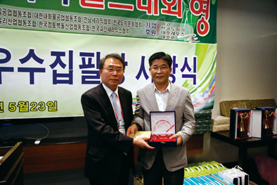 지난달 23일 제7회 세라믹코리아 우수집필상 시상식이 대호 단양 C.C에서 세라믹 관련 산·학·연 관계자 80여 명이 참석한 가운데 진행됐다. 이번 제7회 우수집필상엔 지난 1년 동안(2016년 5월호~2017년 4월호) 세라믹코리아 특집기사를 기고한 외부필진 34명 중 유효득표 943표 중 55표를 득표한 박정식 ㈜엠아이디 세라믹기술연구소 소장(현 메세텍 대표)이 선정됐다. 박정식 소장은 세라믹코리아 2016년 6월호에 ‘세라믹분말사출성형 기술과 세라믹 쥬얼리 응용’을 기고했다. 이날 시상식에선 서승종 세라믹코리아 발행인의 시상으로 수상자인 박정식 소장에게 상패와 상금 1백만 원이 수여됐다.