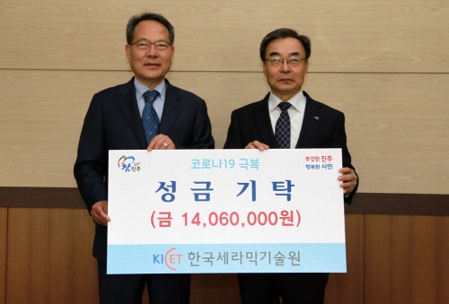한국세라믹기술원(원장 유광수)은 4월 7일(화), 코로나바이러스감염증-19(코로나19) 극복을 위해 모은 성금 1,406만원을 진주복지재단에 기부했다고 밝혔다.