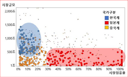그림 1. 한중일 소재부품장비의 포지셔닝