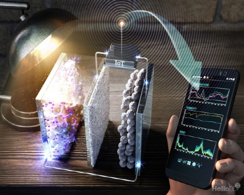 실내조명으로 충전된 전지를 이용해 iot 센서를 작동시키고 온도를 감지하는 모습.(자료제공: UNIST)