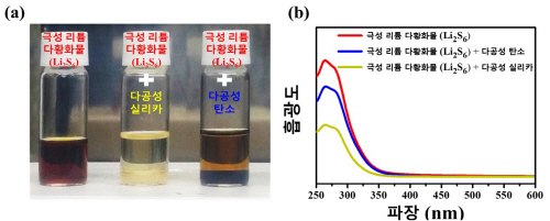 다공성 실리카 및 다공성 탄소체에 대한 극성 리튬 다황화물의 흡착 효과를 관찰한 실험(자료제공: DGIST)