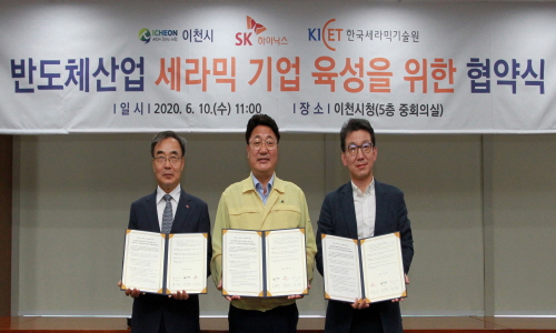 한국세라믹기술원(원장 유광수)은 지난달 10일(수), 이천시청에서 이천시(시장 엄태준), SK하이닉스(대표이사 이석희)와 반도체 산업 관련 세라믹 기업 육성을 위한 협약을 체결했다고 밝혔다.