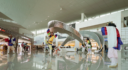 바닥타일로 시공된 공항 로비               출처 : 인천국제공항 홈페이지, 제주국제공항 홈페이지 캡처