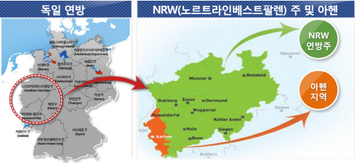 [ 설립위치 ] 센터가 위치하는 NRW연방주 아헨특구는 세계 적인 R&D 인프라를 보유하고 있는 독일 최대의 연구기관· 기업 집적지로, 독일 최대 공과대학인 아헨공대를 포함한 70 개의 대학, 막스플랑크·프라운호퍼 등 41개 연구소 네트워크, 50개 전문연구소가 소재해 있다.