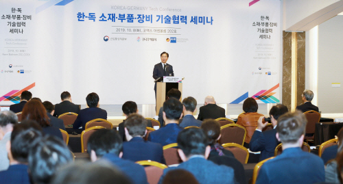 성윤모 산업통상자원부 장관은 이날 축사를 통해 “4차 산업으로 촉발된 미래 신산업은 새로운 소재부품의 뒷받침 없이는 구현될 수 없다”며 “소재부품 산업은 과거부터 제조업의 허리이자 핵심 경쟁력으로 양국 간 협력이 해당 분야에 더욱 집중될 필요가 있다”고 강조했다.