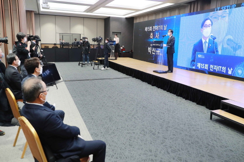 신종 코로나바이러스 감염증(코로나19) 상황을 고려해 참석인원을 대폭 축소한 가운데 방역수칙을 준수하며 진행된 이날 기념식에서는 전자·IT산업 발전에 기여한 공로로 금탑산업훈장 등 정부포상 13명, 산업부 장관표창 33명 등 총 43점이 수여됐다.