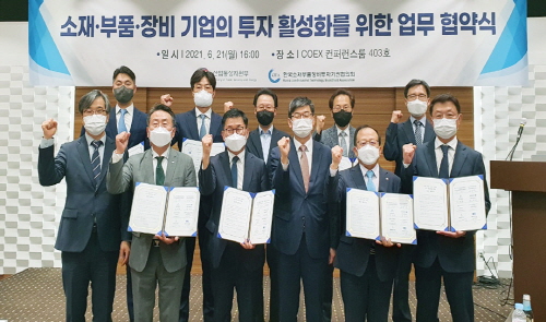 산업통상자원부(장관 문승욱)는 지난달 21일, 코엑스 4층 세미나실에서, 소재부품장비투자기관협의회, 산업기술평가관리원, 산업은행, 민간 투자기관이 모여 ´소재·부품·장비 투자 활성화를 위한 업무협약(MOU)´을 체결했다고 밝혔다.