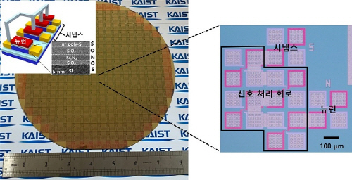 연구팀은 문제 해결을 위해 이미 널리 쓰이고 있는 표준 실리콘 미세 공정기술로 제작될 수 있는 단일 트랜지스터로 생물학적 뉴런과 시냅스의 동작을 모방했으며, 이를 동일 웨이퍼(8 인치) 상에 동시 집적해 뉴로모픽 반도체를 제작했다.