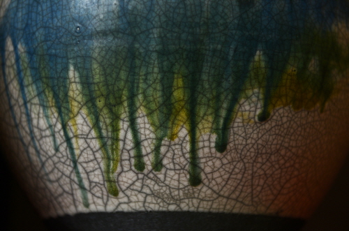 양동엽 작가는 2000년 초반부터 차인인 지인의 권유로 찻그릇을 작업하기 시작했고, 라쿠작가인 그에게 라쿠 찻그릇은 자연스러운 흐름이었다. 애초에 라쿠가 찻그릇에서 시작되었으니 망설일 이유가 없었다. 하지만 조형 도자에 사용하던 저화도 라쿠유약을 사용할 수 없어 고심하던 그에게 97년 연구한 장석유약이 번쩍 떠올랐다. 라쿠소성용 소지는 급열과 급냉을 견뎌야 하는 다공질이어야 한다. 그는 내화점토와 석기점토를 기본으로 볼클 레이를 20% 정도 첨가한 삼백토를 주로 사용한다. 가마의 열기가 정점에 올랐을 때 가마를 열어야 하는 라쿠 기법의 특징상 고화도 유약을 쓰기 어렵기 때문에 일반적인 라쿠작업에는 저화도 유약을 주로 사용한다. 이런 저화도 유약은 납이나 중금속류의 유해물질로부터 안전할 수 없다. 특히 북미지역의 조형작업용 라쿠가 전해진 우리나라에서는 라쿠그릇은 안전하지 않다는 인식이 자리 잡고 있다. 양동엽 작가는 “97년 대학에서 소지와 유약을 수업하던 중 인체에 무해한 라쿠소성용 장석유약을 개발했었죠.” 유약을 개발했을 당시엔 연구성과로 유약 데이터를 만들었지만, 특별히 자신의 조형작업에 사용할 필요는 없었는데 찻그릇을 작업하며 빛을 보게 되었다.
