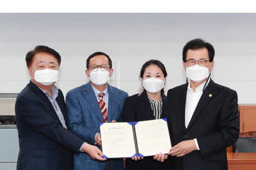 충청북도와 청주시는 10월 25일 도청에서 (주)샘씨엔에스와 투자협약을 체결했다고 밝혔다. 협약식에는 이시종 도지사, 한범덕 청주시장, (주)샘씨엔에스 최유진 대표, 김헌태 대표 등이 참석했다.