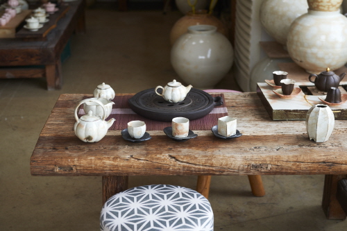 항아리처럼 큰 기물은 덤벙기법이 까다롭지만, 자연스러운 덤벙기법이 항아리와 잘 어울린다. 대백갤러리 전시당시 다양한 크기의 덤벙분청 항아리들을 한반도 모양으로 설치해 이목을 끌기도 했다. 다관작업도 그가 즐기는 작업 중 하나인데 몸통과 물대 뚜껑 손잡이를 따로 만들어 결합해야 하는 작업과정에서 다관 형태자체의 조형감은 물론이고 장식을 더할 수도 있고 손잡이와 뚜껑에 변화도 주는 즐거움이 있다.