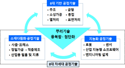 <뿌리기술의 확장 방향 : 6대 기반 공정기술 + 8대 차세대 공정기술>