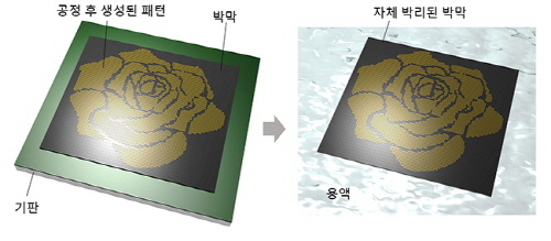 반도체 공정 후 박막이 기판으로부터 자체 박리되어 분리되는 모습. (자료제공: 포스텍)