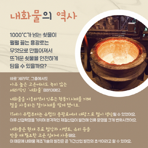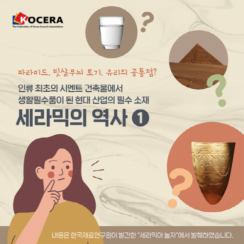 한국세라믹연합회 세라믹산업협력단은 세라믹 저변확대를 위해 일반 대중이 쉽게 이해할 수 있도록 세라믹에 대한 전반적인 내용을 압축하여 카드뉴스로 제작했다. 이에 세라믹코리아는 ‘세라믹산업협력단’의 동의와 자료를 협조받아 이번 5월호 특집으로 구성해 소개한다.