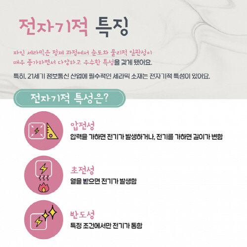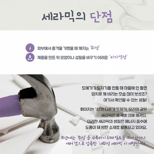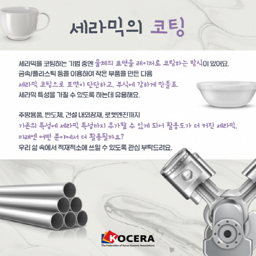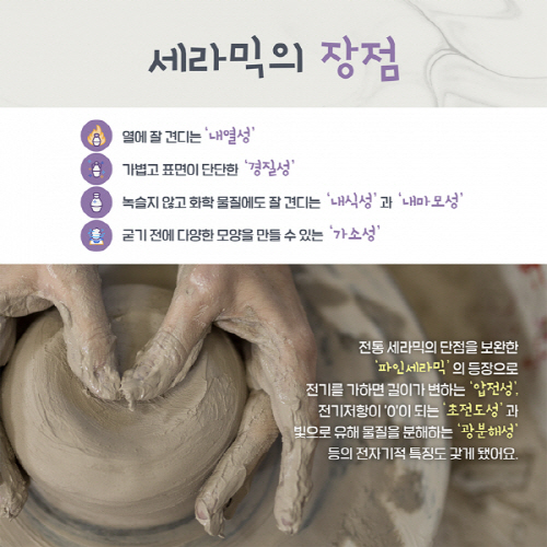 한국세라믹연합회 세라믹산업협력단은 세라믹 저변확대를 위해 일반 대중이 쉽게 이해할 수 있도록 세라믹에 대한 전반적인 내용을 압축하여 카드뉴스로 제작했다. 이에 세라믹코리아는 ‘세라믹산업협력단’의 동의와 자료를 협조받아 이번 5월호 특집으로 구성해 소개한다.