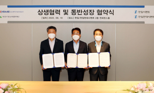 한일시멘트는 지난달 10일 한일시멘트 본사에서 중소벤처기업진흥공단, 대중소기업농어업협력재단과 함께 상생협력형 내일채움공제를 통한 ´상생협력 및 동반성장 협약식´을 가졌다고 밝혔다.