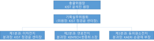 과기정통부는 산·학·연 전문가로 구성된 기획총괄위원회(위원장: 한국과학기술연구원 윤석진 원장)를 구성하고 6월 10일 착수회의를 시작으로 다양한 의견수렴을 거쳐 올해 하반기 중 ‘차세대 전지 초격차 연구개발 전략’을 마련 발표할 계획이다. 이날 착수회의는 한국과학기술연구원 대회의실에서 KIST 윤석진 원장(위원장), 과기정통부 이창윤 기초원천연구정책관, LG에너지솔루션 김제영 상무 등 산학연 전문가 15명 내외가 참석했다.