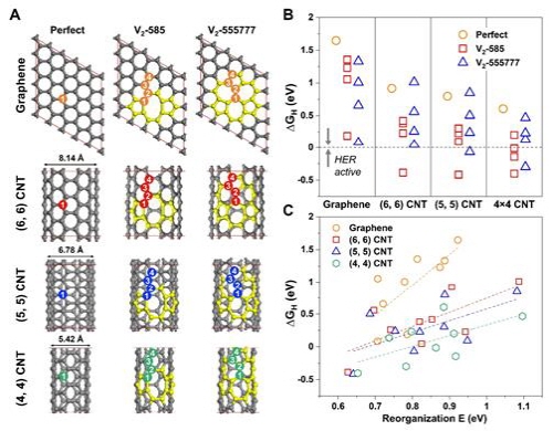 초미세기공과 수소 발생 반응 사이의 강한 인과관계를 보여주는 제일 원리계산 데이터. (자료제공: 고려대)