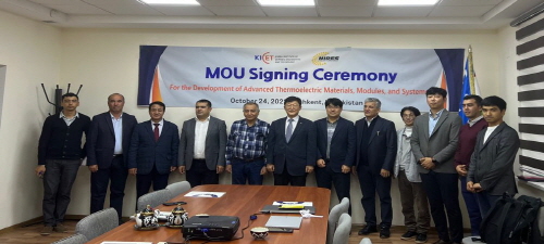 한국세라믹기술원(원장 정연길)은 열전발전을 활용한 산업폐열 회수를 위해 지난 24~25일, 우즈베키스탄 현지에서 정부기관인 우즈리티네피가스 및 재생에너지연구원과 업무협약을 체결했다고 10월 28일 밝혔다.