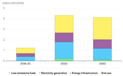 그림 1. Net zero 재생에너지 예상 투자[1]