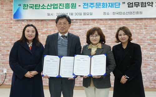 한국탄소산업진흥원(원장 방윤혁, 이하 진흥원)과 전주문화재단(대표이사 백옥선)은 1월 30일 탄소소재를 활용한 예술작품 활동 지원에 관한 업무협력 양해각서를 체결했다고 지난달 2일 밝혔다.