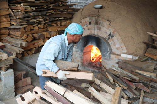 도공이 장작가마에 불을 지피는 모습.(자료제공: 이천시)