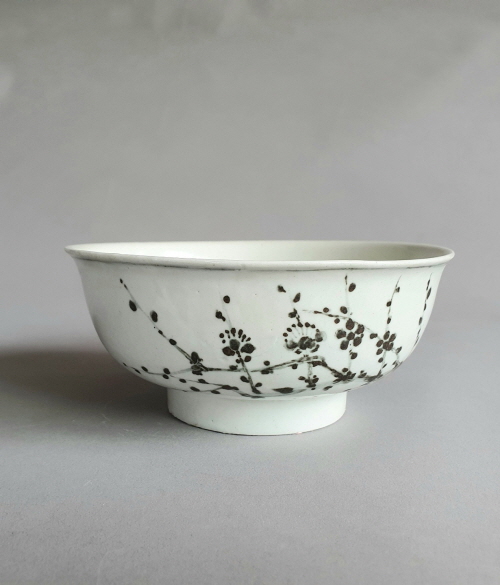 이 작품과 쌍둥이처럼 유사한 유물로 「백자 철화 매죽무늬 완(이건희 기증, 국립중앙박물관 소장)’」이 있다. 그동안 철화안료를 사용해서 무늬를 그린 작품으로 알려졌으나 실제로는 국내개발 코발트 안료를 사용한 청화백자이다. 사진8)