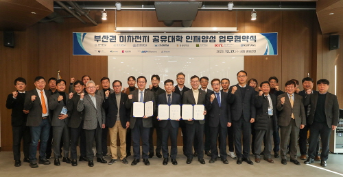 동아대를 비롯 부경대와 한국해양대, 부산대, 신라대, 경성대, 경남정보대 7개 대학이 협약서에 사인했고 ‘부산권 이차전지 지산학 복합체’에 금양과 유니스㈜, ㈜한국엘에프피, 부산그린에너지㈜ 등 20개 기업이 참여한다.