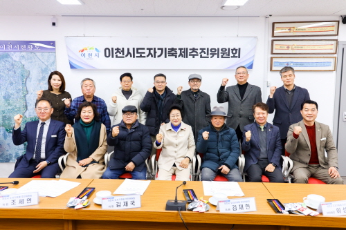 지난해 12월 21일 이천시청에서 김경희 시장(아래 중앙)이 이천도자기축제추진위원회 회의를 마치고 추진위원과 기념 촬영 모습. (자료제공: 이천시)