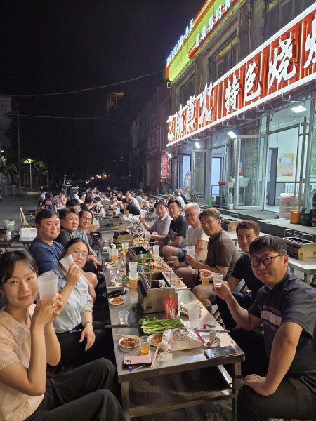2일차 일정인 태산 산행과 쯔보시 지역 업체방문 후에는 참가자들을 위하여 전선규 한국파인세라믹스협회장의 초청 만찬에 참석하여 국내 첨단세라믹산업이 나아갈 방향 등의 주제들로 바이주를 곁들어가면서 피로를 풀 수 있었던 인적교류회를 가졌으며, 이후 야시장에서 쯔보시의 명물이라는 양꼬치와 칭다오 맥주를 건배로 우리 참가자들만의 오붓한 시간을 보냈으며, 쯔보시의 야경과 밤거리에 흠뻑 빠져 즐거운 시간을 보냈다.